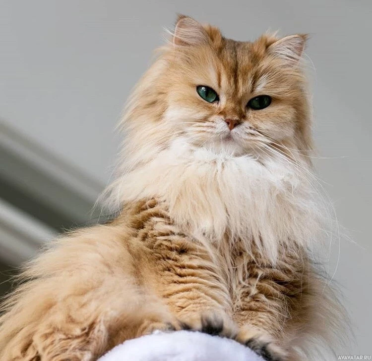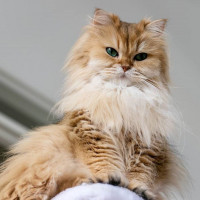 pointed ears and long, dense coat. The expression on the cat's face seems calm and attentive.