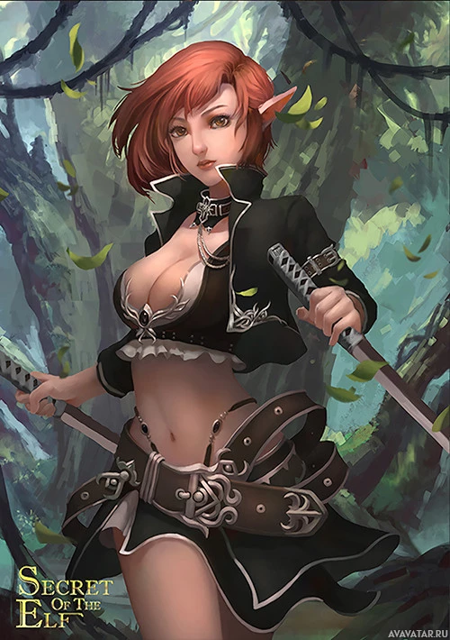 The image depicts an animated character, a female elf with