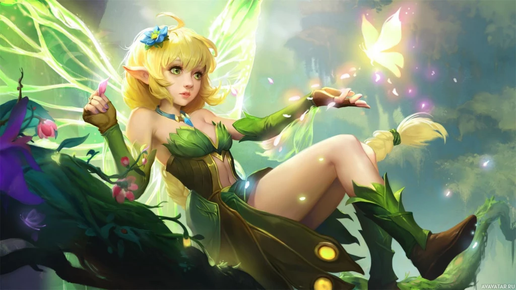 The image depicts a fantasy-themed character, which appears to be a fairy. She is illustrated with elements that are often associated with fairy mythology or fantasy genres, such as wings and