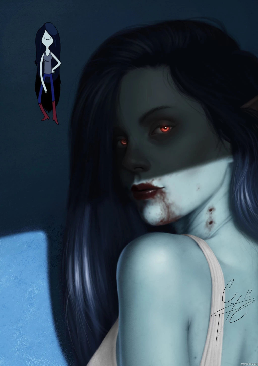 The image depicts a stylized artwork of a character that resembles Marceline the Vampire Queen from "