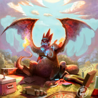 a fantasy setting. The overall atmosphere is one of calmness and leisure, fitting for someone who enjoys gaming, which is implied by the dragon character's posture and activity.