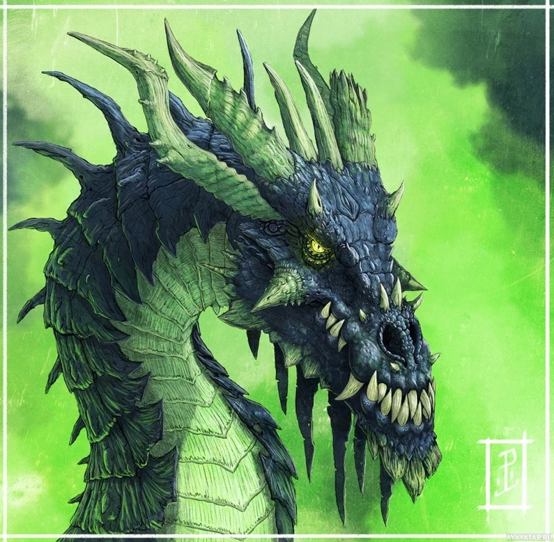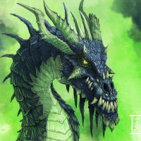 dark tones, but there are hints of green that could be suggesting some kind of magical element or a specific type of dragon. The background features