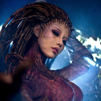 The image shows a person dressed in cosplay, emulating the appearance of Kerrigan from
