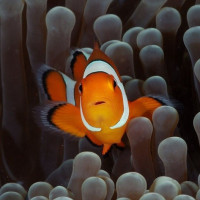 natural habitat and serves as a protective barrier from predators. Clownfish are well-known for their vibrant orange and white coloration,