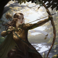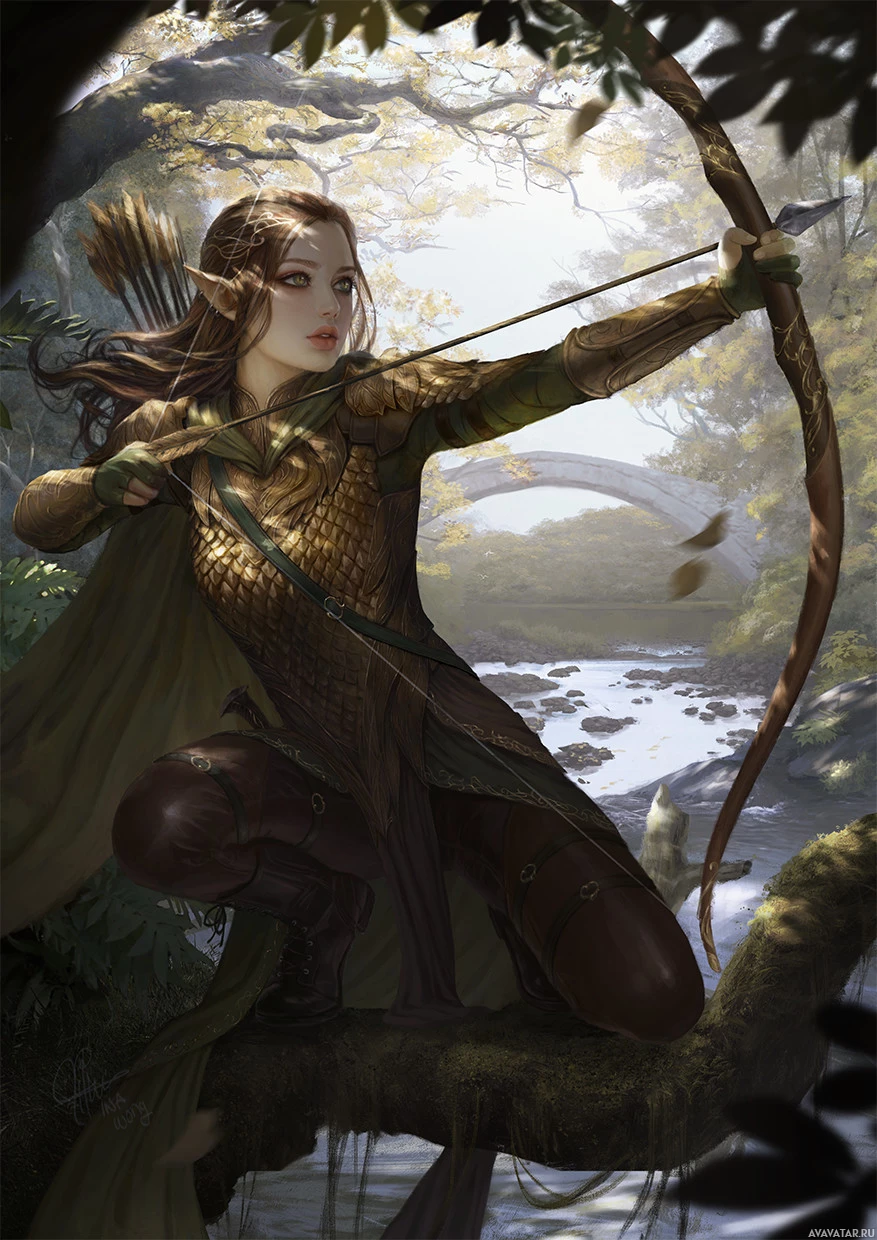 an elf character, depicted as a skilled archer. The elf is dressed in fantasy-themed armor and holds a bow aimed at