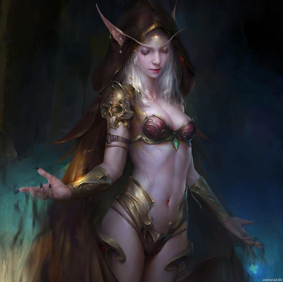 a fantasy character that appears to be inspired by Drow, which is the Elven term for "dark elves" in various fantasy settings. The character is depicted with pointed ears, and she has features such as