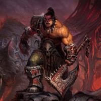 a fantasy scene featuring an orc warrior. He is wearing armor and holding what appears to be