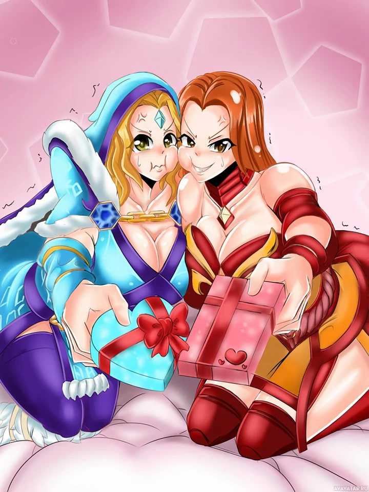 the Crystal Maiden from the game Dota 2. The other character has a more modern style, wearing