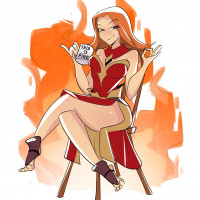 character Lina. Behind her are flames, suggesting she might be casting a spell or performing an action associated with fire. The character appears to be in