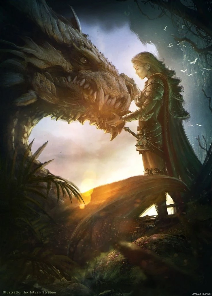 Фантастическая встреча между драконом и эльфом Дополнительные картинки по совпадающим тегам