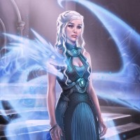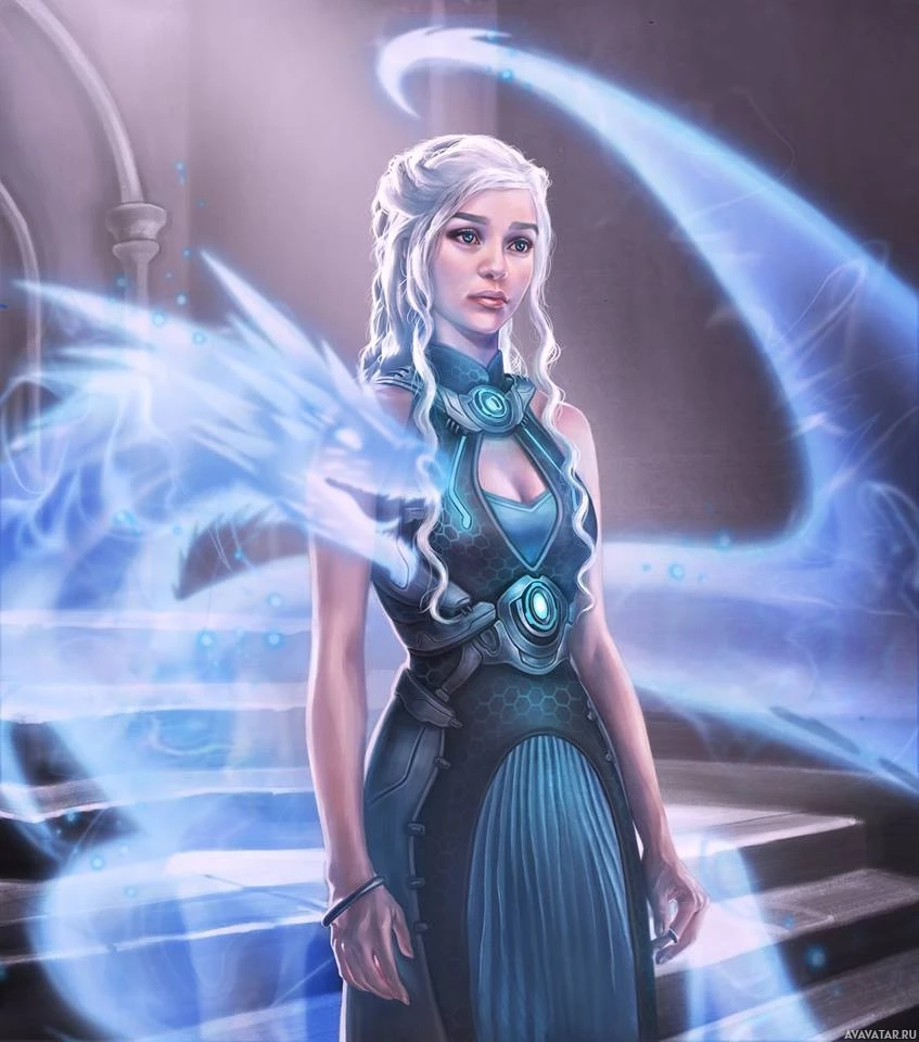 Daenerys Targaryen, known for her association with dragons and her status as the "Mother of Dragons." She is shown in
