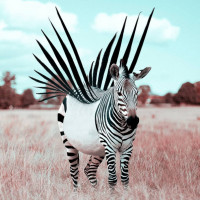 large wings or feathers due to the angle and movement captured in the photograph. This creates an interesting