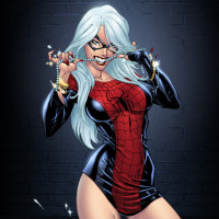 a black costume with white accents, which aligns with the traditional look of Black Cat in various depictions. The art style suggests it could be from a modern comic book illustration.