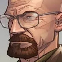 The picture shows an illustration of the character Walter F. White, known as Heisenberg from the television series "Breaking Bad." The character is portrayed with a stoic expression and is wearing his iconic mustache and glasses. This version of the character is drawn in a stylized manner often seen in comic books or animated adaptations of the show.
