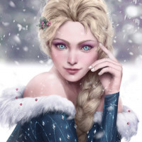 The image depicts an illustration of a character resembling Elsa from Disney's "Frozen." She is styled with long