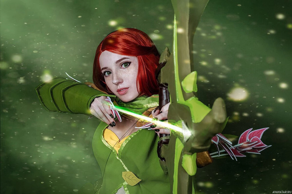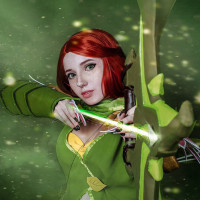the video game Dota 2, known as Windranger. She is depicted in her signature pose, holding a bow and aiming it at an unseen target, with