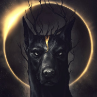 an ordinary dog but rather a figure of some significance, possibly representing a character or theme in a story or mythology.