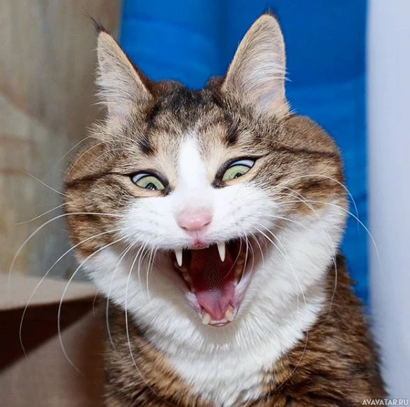 The image shows a cat with its mouth open as if it is making a noise or yawning. Its ears are perked up, and its eyes appear wide, possibly in surprise or excitement. The cat's fur has various shades of brown and black striped patterns, which is characteristic of