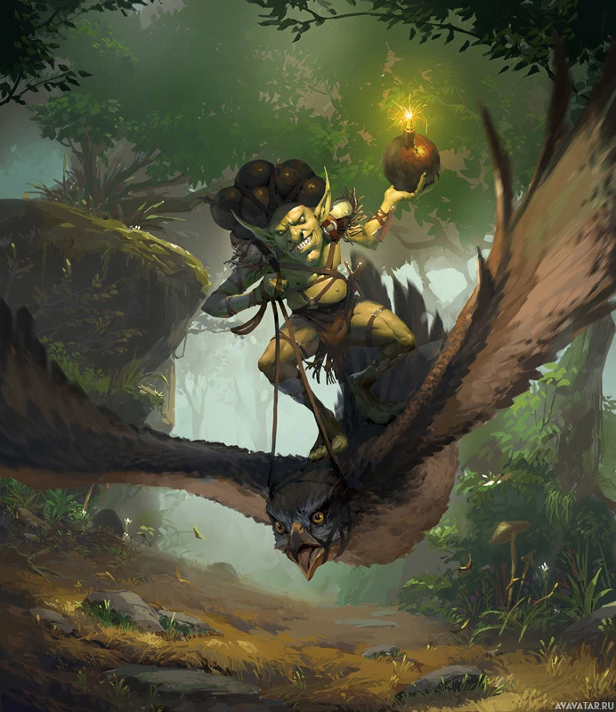 фэнтези | Фотки и рисунки с фэнтези | Fantasy | Смелый побег гоблина на птичьем сообщнике