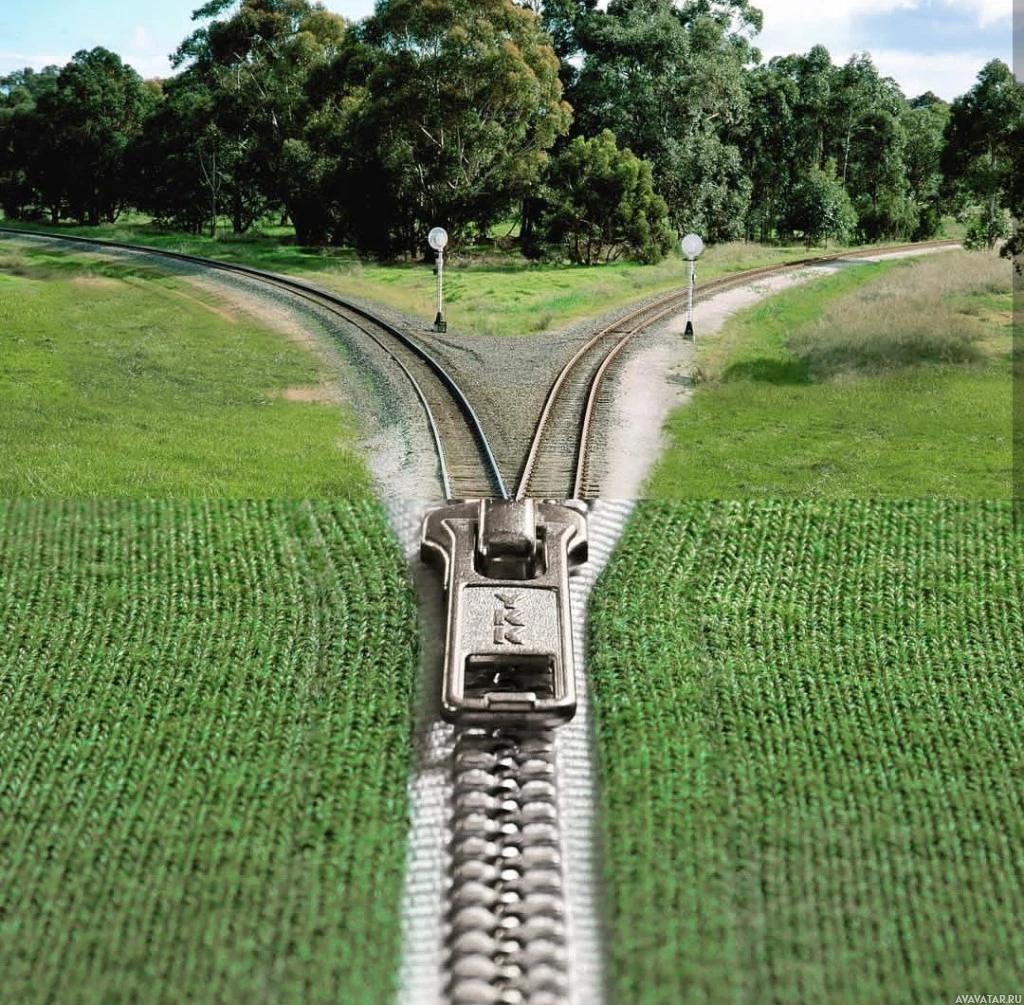 the railroad tracks were inserted into an image of vegetation, giving the illusion that they are disappearing into the environment.