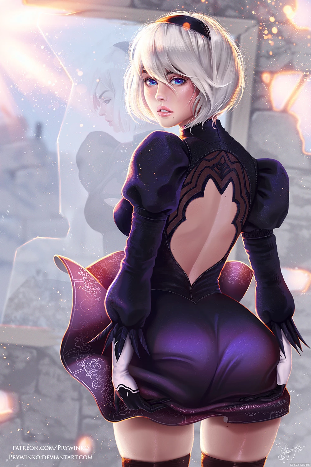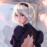 blonde hair and appears to be wearing a purple or black outfit with a skirt and stockings. She is looking towards the viewer, and her pose suggests she might be in motion. The art style is reminiscent of Japanese anime or manga illustrations.