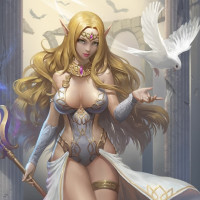 The image depicts a fantasy-themed character that appears to be an elf. She has long
