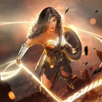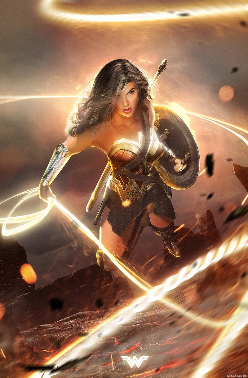 The image depicts Wonder Woman, a fictional superheroine from