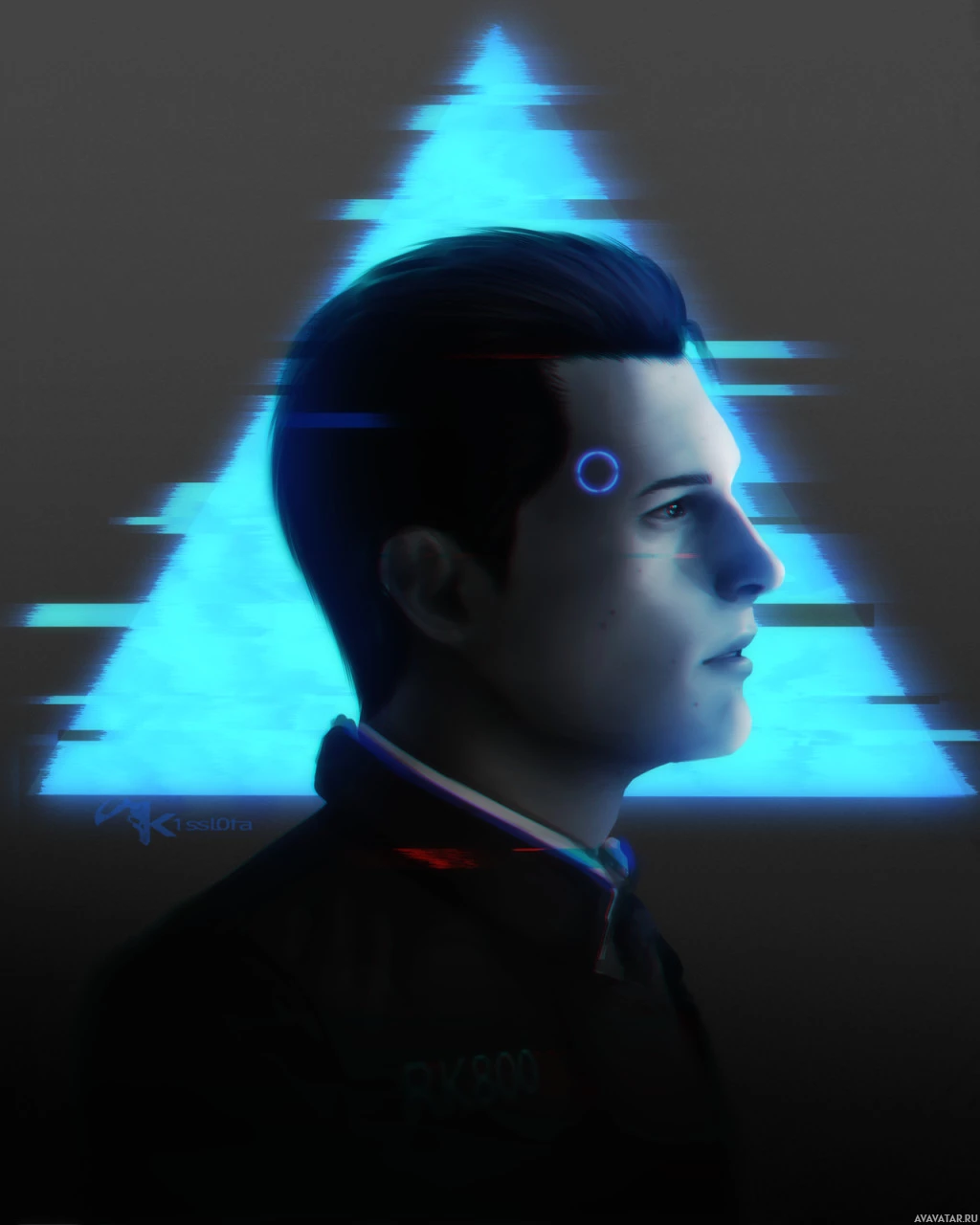 the video game "Detroit: Become Human." The character depicted has a stylized appearance with