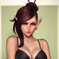 elf character, drawn in an artistic and stylized manner. She has pointed ears, which is characteristic of