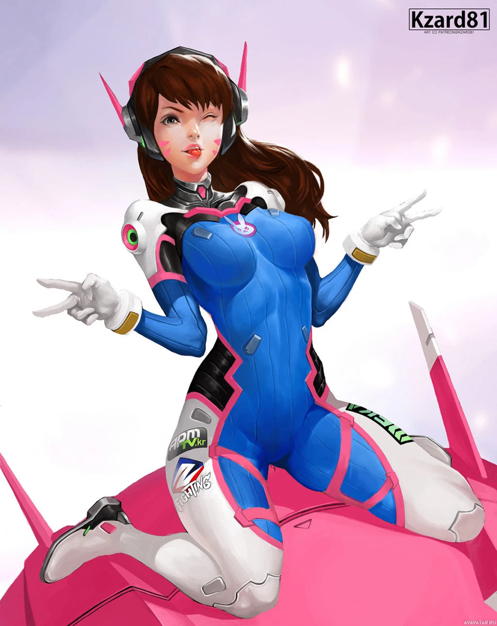 the video game "Overwatch." The character is D.Va, known for her