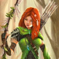 a forest setting, consistent with the character's archery skills and abilities in the game.