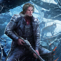 a male character who appears to be in the midst of a snowy, wooded environment. He is wearing a long coat with