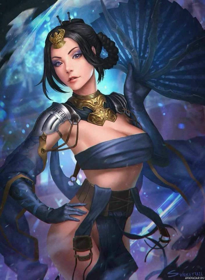 This image depicts a character that resembles Kitana from the "Mortal Kombat"