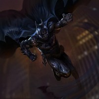 dynamic poses suggesting movement and action. The background suggests a cityscape at night, which could be representative of