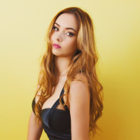 long hair. The background is plain and does not distract from the subject of the photo.
