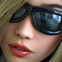The image shows a close-up of a female character wearing sunglasses. She appears to be from a video game or digital media, judging by the quality and style of her appearance.