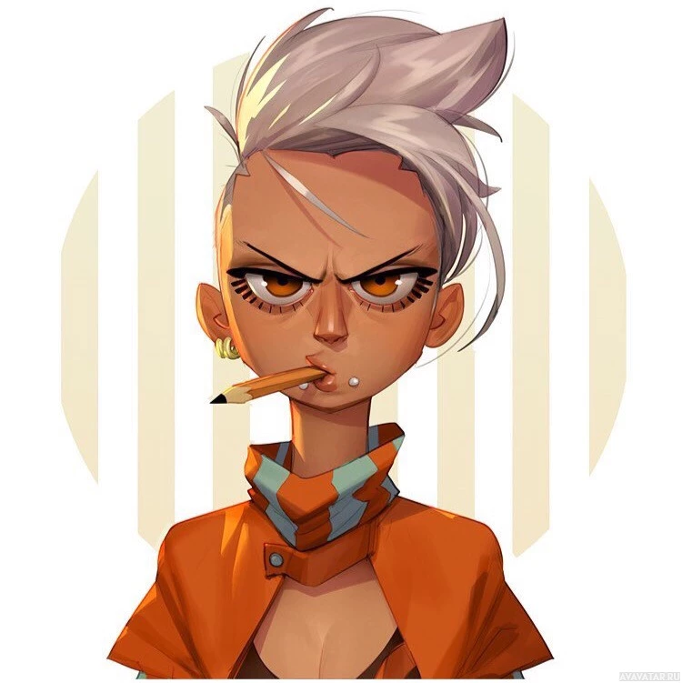 This is an illustration of a character, which appears to be a young female with spiky silver hair. She has
