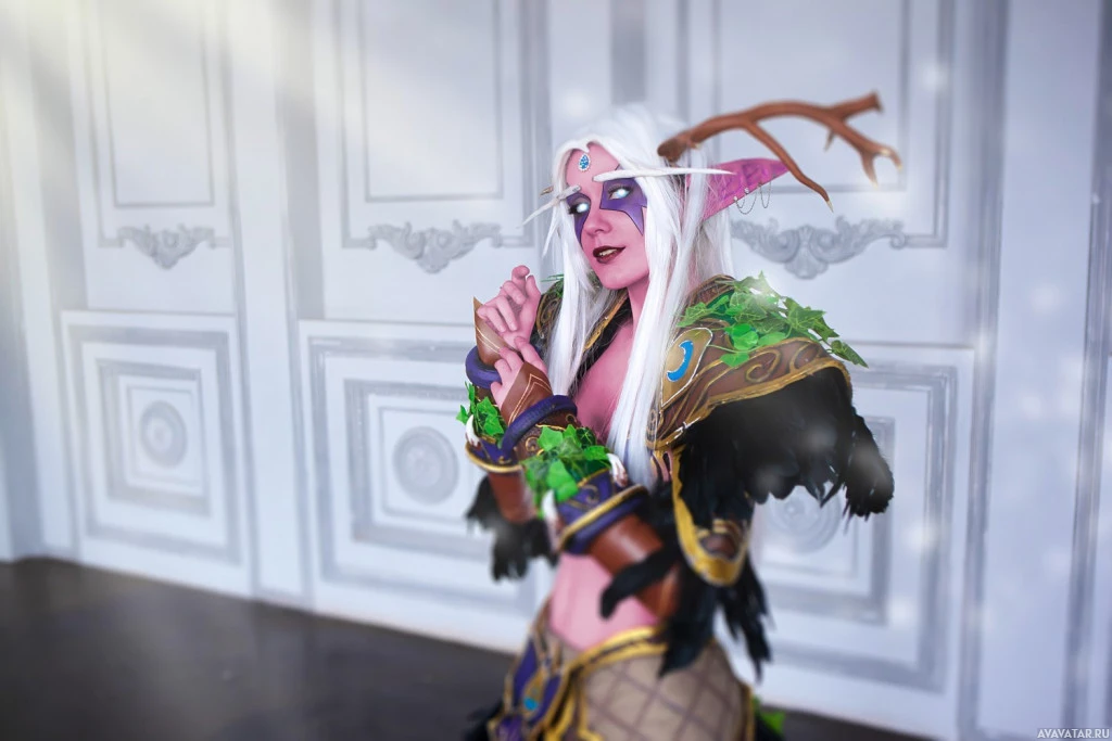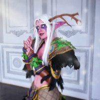 The image features a person dressed in cosplay attire that appears to be inspired by characters from the World of Warcraft