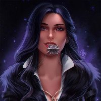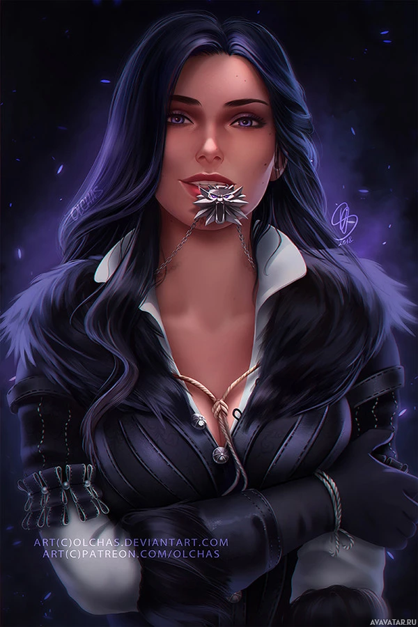 The image depicts a character from the "Witcher" series. She is styled in