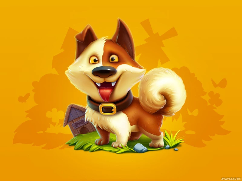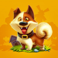 На картинке изображена милая, стилизованная карикатурная собака. Он имеет счастливое выражение, когда его язык торчит, а уши приподняты. Фон - это простой, твердый цвет, чтобы сосредоточиться на персонаже. Это изображение может быть связано с играми или анимированным контентом из-за его стиля дизайна.