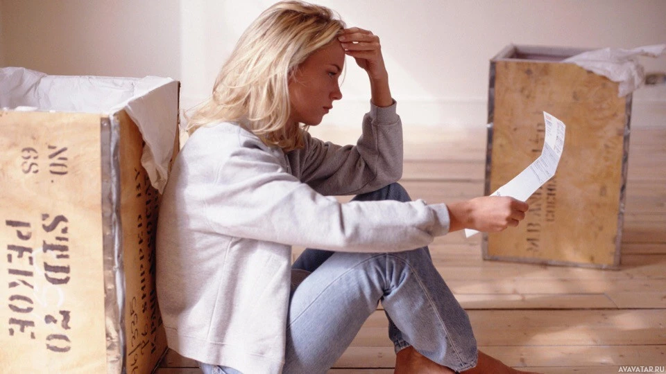 The image shows a woman sitting cross-legged on the floor, leaning against