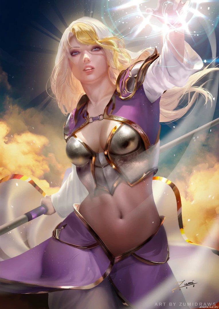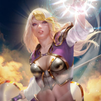 blonde hair and is dressed in armor with a cape, suggesting she might be a warrior or a character of importance in the context of the story she represents. The art style appears to be influenced by Japanese anime or manga illustration, which is common for fantasy-themed characters.