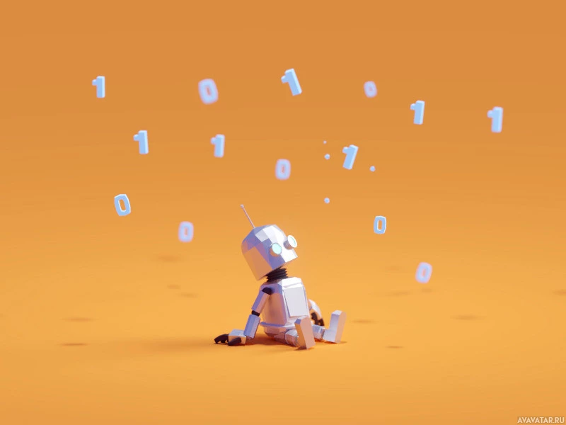 a robot character sitting on the ground, surrounded by floating blue numbers. This scene is likely from an animated film or television show that features robots or technology as a central theme. The number of zeros in the image could be a part of the narrative or used to represent concepts like counting, data, or connectivity within the context of the story.
