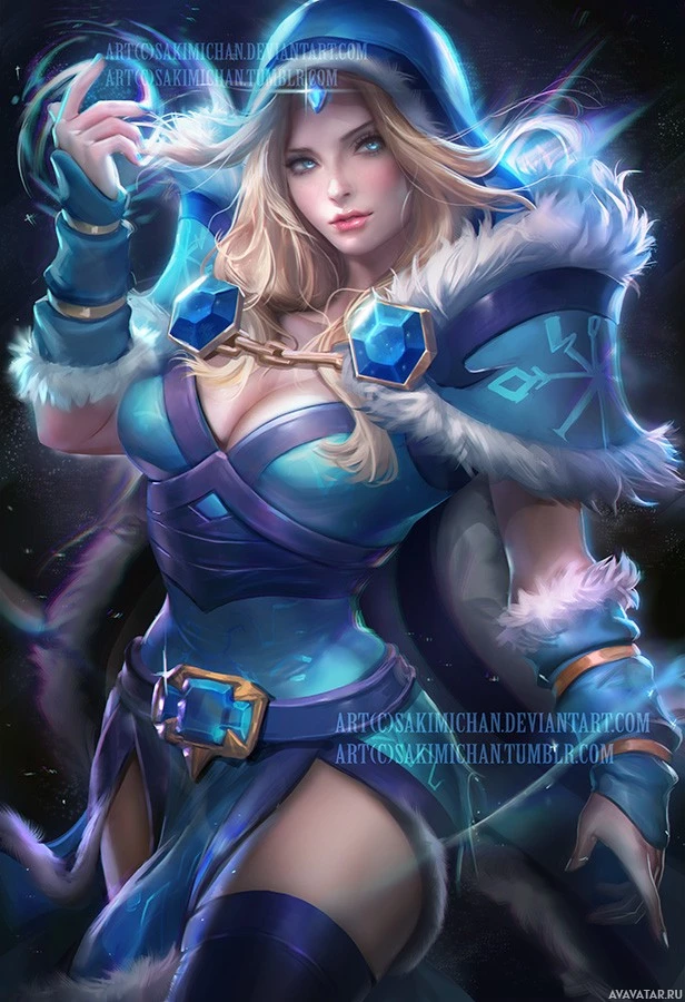 the Crystal Maiden, a playable heroine known for her abilities related to magical crystals in the game.