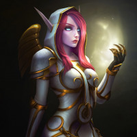 an elemental force as suggested by the glowing orb she holds in her hand. The background is dark, which helps to emphasize the character and the mystical