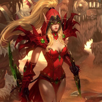 a female character from the "Warcraft" series. She is an elf and is wearing armor that includes