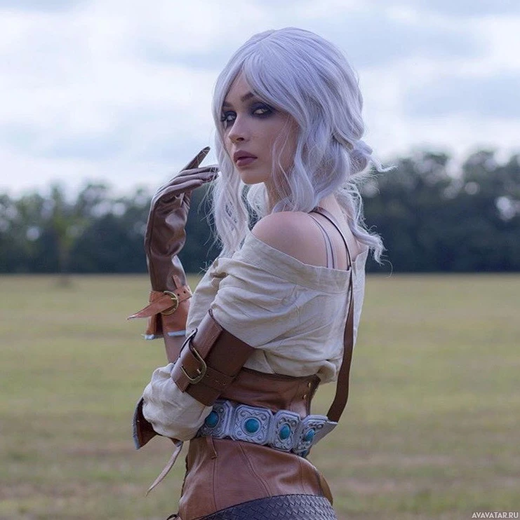 The image depicts a person dressed as Ciri from "The Witcher 3: Wild Hunt"