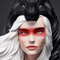human beauty with the raw power and wildness often associated with wolves, creating an artistic representation that merges both forms.