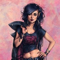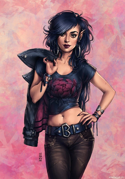 This image depicts an illustration of a character with fantasy elements. The character has elf-like features such as pointed ears and a slender build, which are typical characteristics for an elven representation in