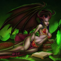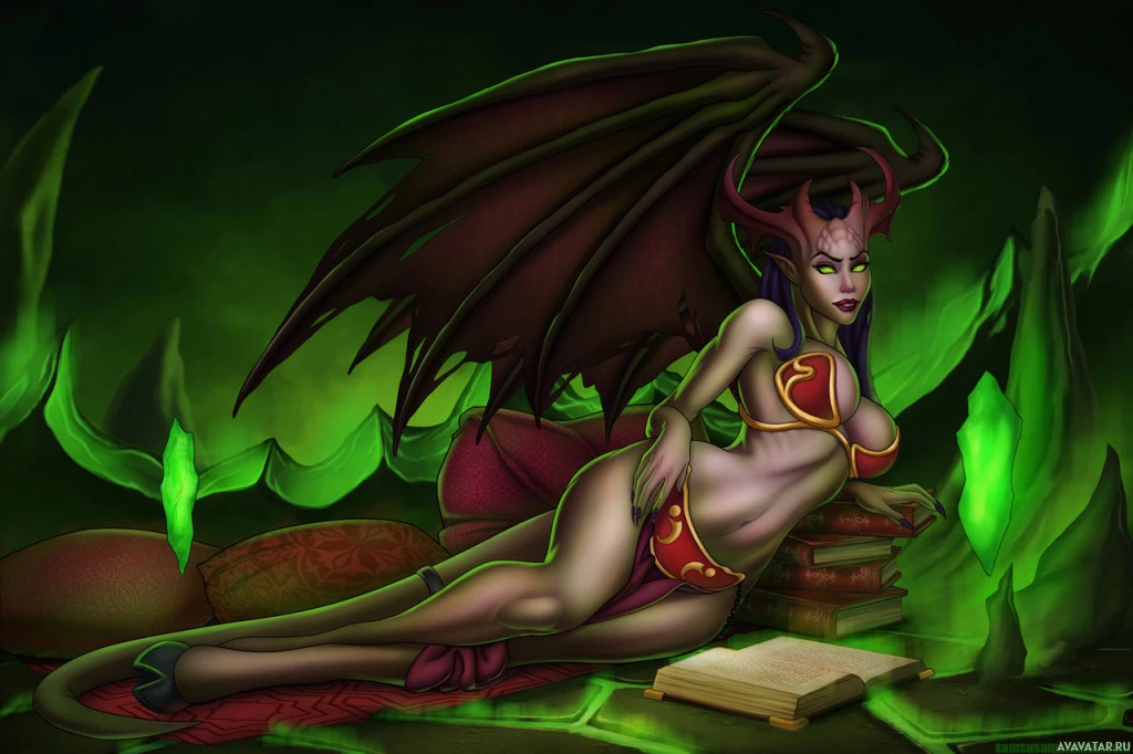 a mythical creature often associated with lust or temptation, usually depicted in human form but with the wings and other traits of an angel or demon. In this particular artwork, the succubus is portrayed as having horns,